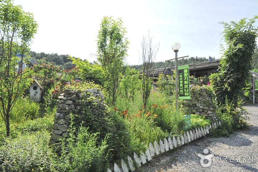 [허브나라]는 다양한 허브와 야생화들을 가까이서 보고 알록달록한 미니정원 곳곳에서 사진도 찍고 소원풍차와 허브샴 등 여러 볼거리가 있는 공간이다.